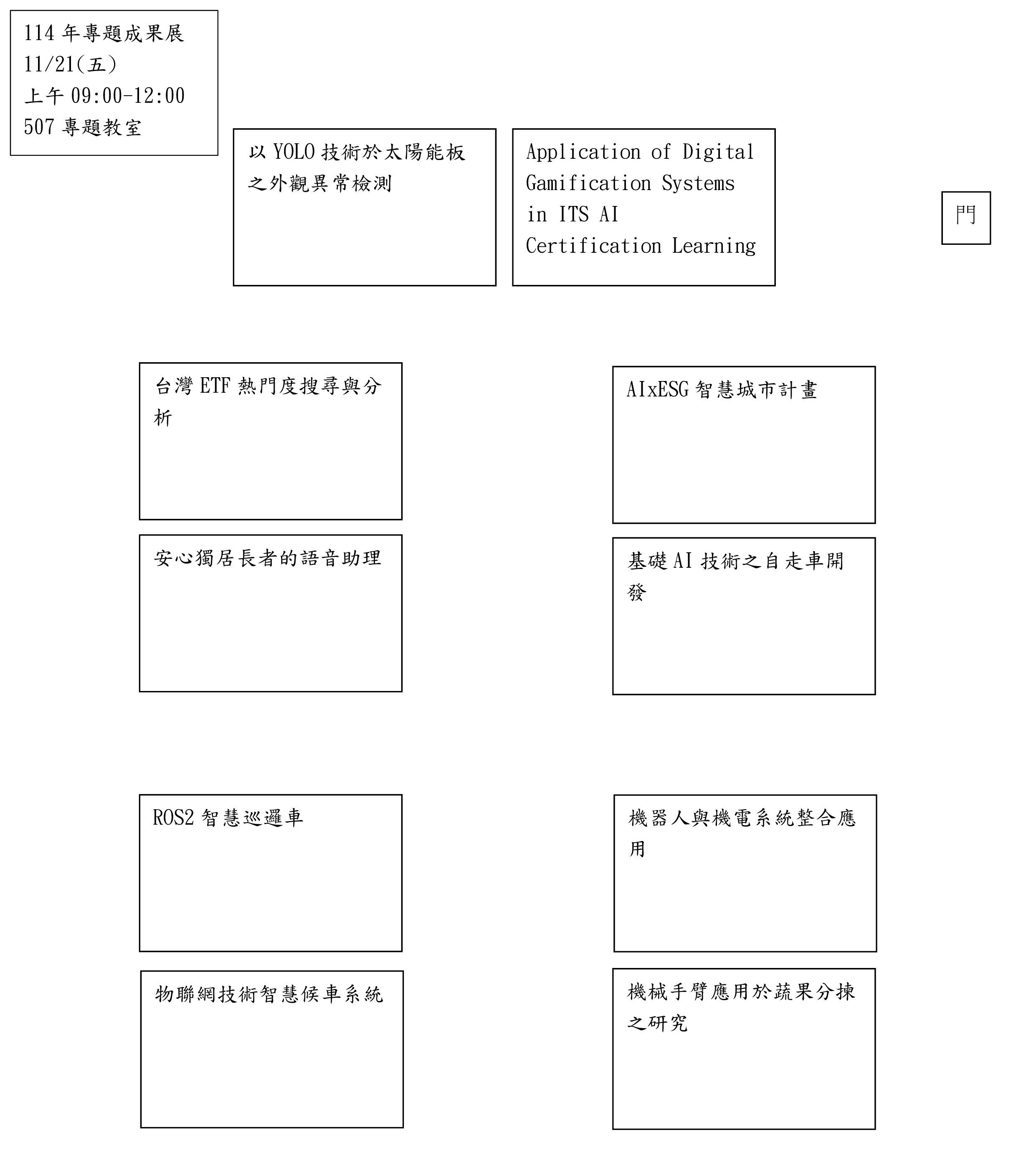 專題成果發表公告資訊如下,請同學們當天提前到穿著正式服裝(統一顏色襯衫、西裝褲、皮鞋等)